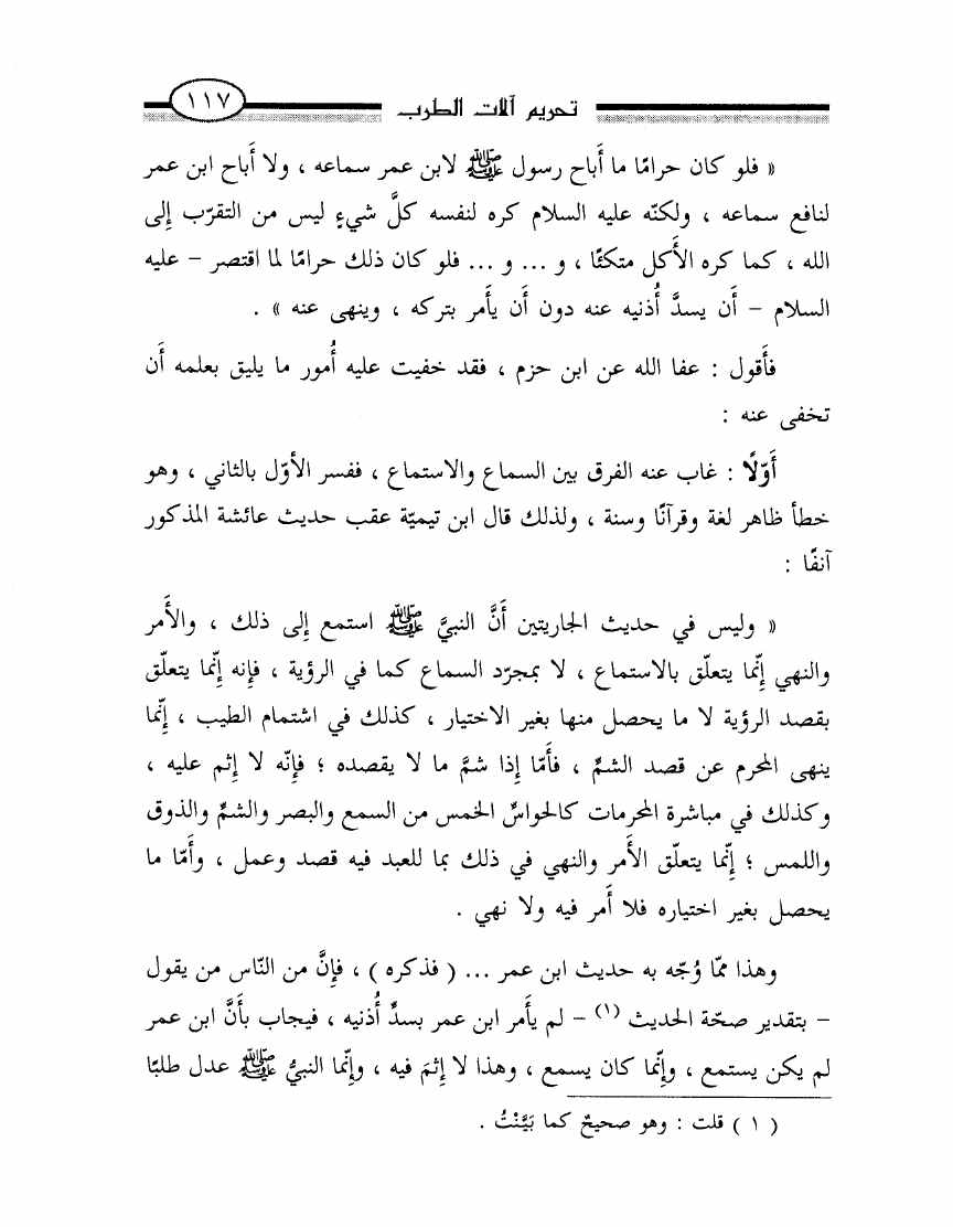 نام کتاب : تحريم آلات الطرب أو الرد بالوحيين وأقوال أئمتنا على ابن حزم ومقلديه المبيحين للمعازف والغنا وعلى الصوفيين الذين اتخذوه قربة ودينا نویسنده : محمد ناصر الدين الألباني جلد : 1 صفحه : 117
