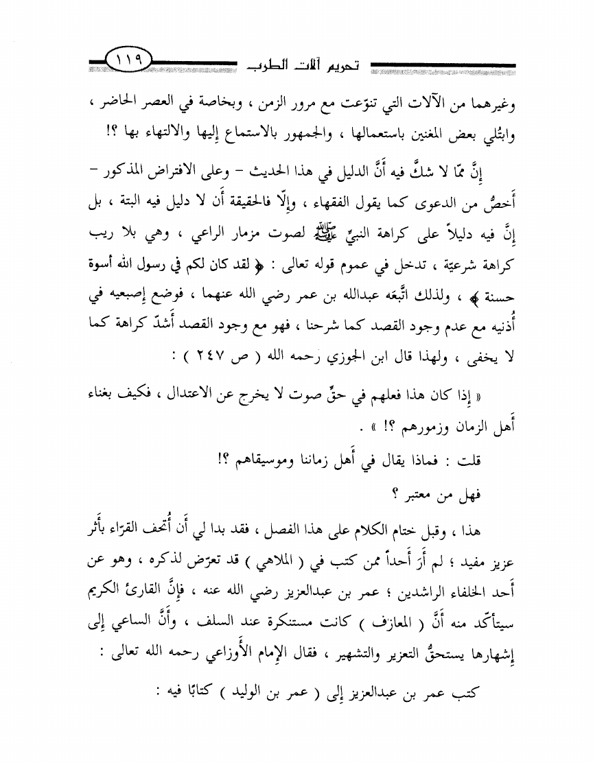 نام کتاب : تحريم آلات الطرب أو الرد بالوحيين وأقوال أئمتنا على ابن حزم ومقلديه المبيحين للمعازف والغنا وعلى الصوفيين الذين اتخذوه قربة ودينا نویسنده : محمد ناصر الدين الألباني جلد : 1 صفحه : 119