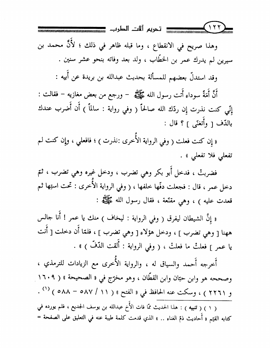 نام کتاب : تحريم آلات الطرب أو الرد بالوحيين وأقوال أئمتنا على ابن حزم ومقلديه المبيحين للمعازف والغنا وعلى الصوفيين الذين اتخذوه قربة ودينا نویسنده : محمد ناصر الدين الألباني جلد : 1 صفحه : 122