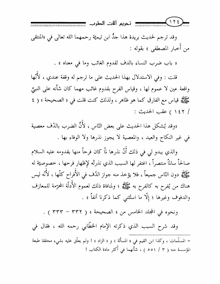 نام کتاب : تحريم آلات الطرب أو الرد بالوحيين وأقوال أئمتنا على ابن حزم ومقلديه المبيحين للمعازف والغنا وعلى الصوفيين الذين اتخذوه قربة ودينا نویسنده : محمد ناصر الدين الألباني جلد : 1 صفحه : 124