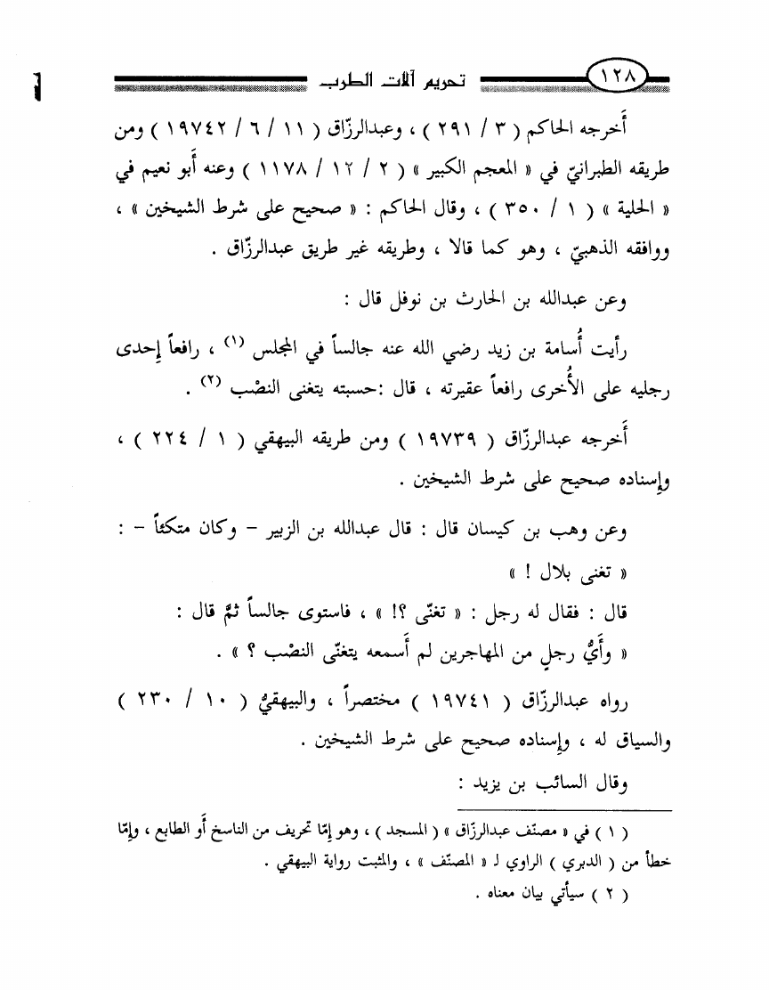 نام کتاب : تحريم آلات الطرب أو الرد بالوحيين وأقوال أئمتنا على ابن حزم ومقلديه المبيحين للمعازف والغنا وعلى الصوفيين الذين اتخذوه قربة ودينا نویسنده : محمد ناصر الدين الألباني جلد : 1 صفحه : 128