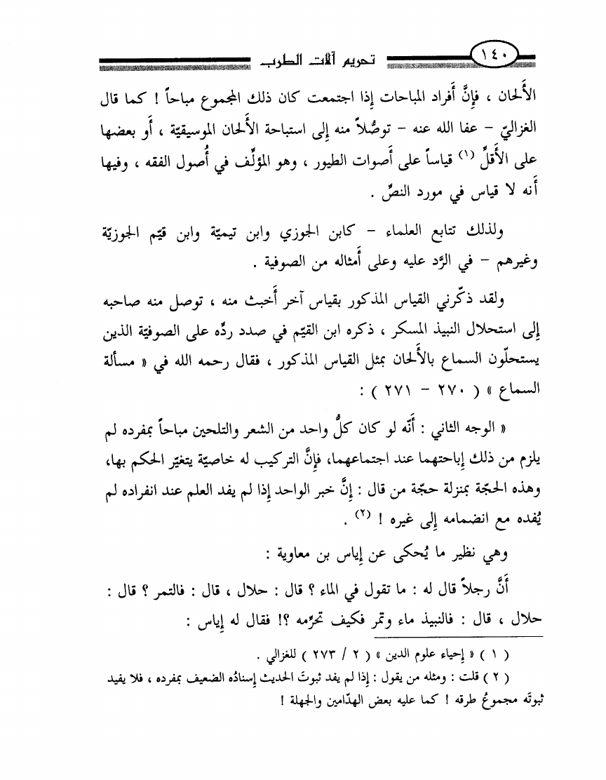 نام کتاب : تحريم آلات الطرب أو الرد بالوحيين وأقوال أئمتنا على ابن حزم ومقلديه المبيحين للمعازف والغنا وعلى الصوفيين الذين اتخذوه قربة ودينا نویسنده : محمد ناصر الدين الألباني جلد : 1 صفحه : 140