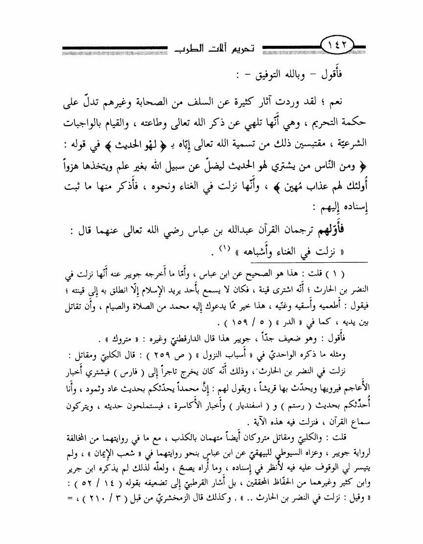 نام کتاب : تحريم آلات الطرب أو الرد بالوحيين وأقوال أئمتنا على ابن حزم ومقلديه المبيحين للمعازف والغنا وعلى الصوفيين الذين اتخذوه قربة ودينا نویسنده : محمد ناصر الدين الألباني جلد : 1 صفحه : 142
