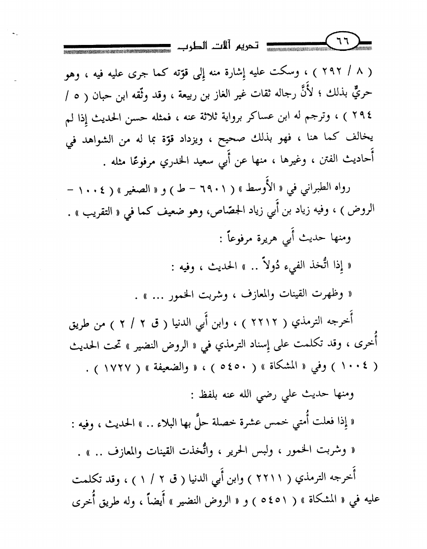 نام کتاب : تحريم آلات الطرب أو الرد بالوحيين وأقوال أئمتنا على ابن حزم ومقلديه المبيحين للمعازف والغنا وعلى الصوفيين الذين اتخذوه قربة ودينا نویسنده : محمد ناصر الدين الألباني جلد : 1 صفحه : 66