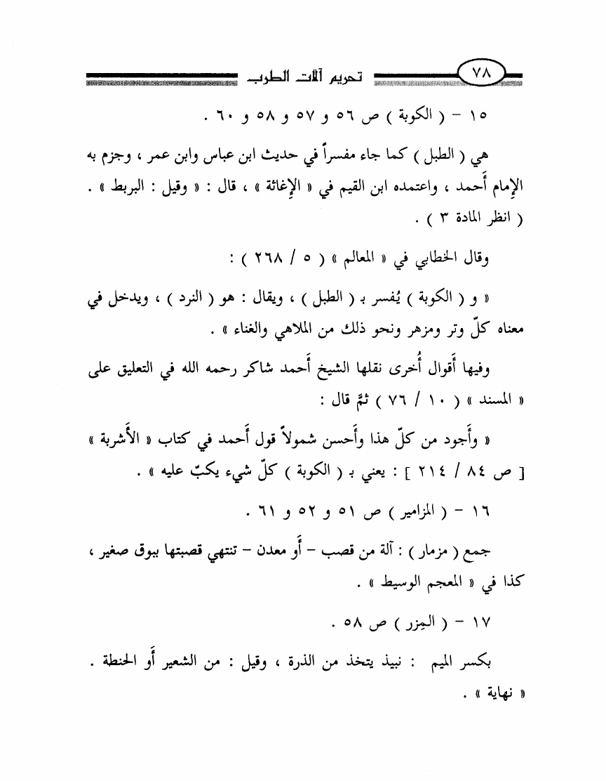 نام کتاب : تحريم آلات الطرب أو الرد بالوحيين وأقوال أئمتنا على ابن حزم ومقلديه المبيحين للمعازف والغنا وعلى الصوفيين الذين اتخذوه قربة ودينا نویسنده : محمد ناصر الدين الألباني جلد : 1 صفحه : 78