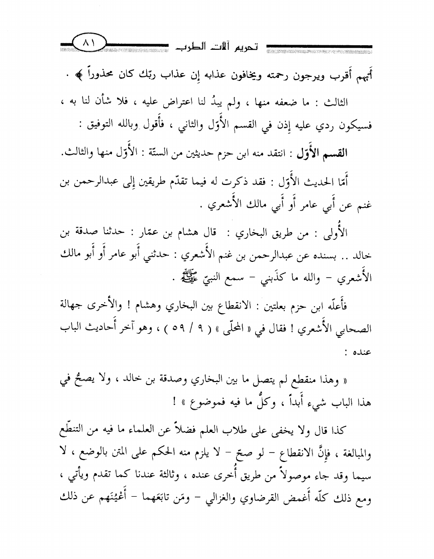 نام کتاب : تحريم آلات الطرب أو الرد بالوحيين وأقوال أئمتنا على ابن حزم ومقلديه المبيحين للمعازف والغنا وعلى الصوفيين الذين اتخذوه قربة ودينا نویسنده : محمد ناصر الدين الألباني جلد : 1 صفحه : 81