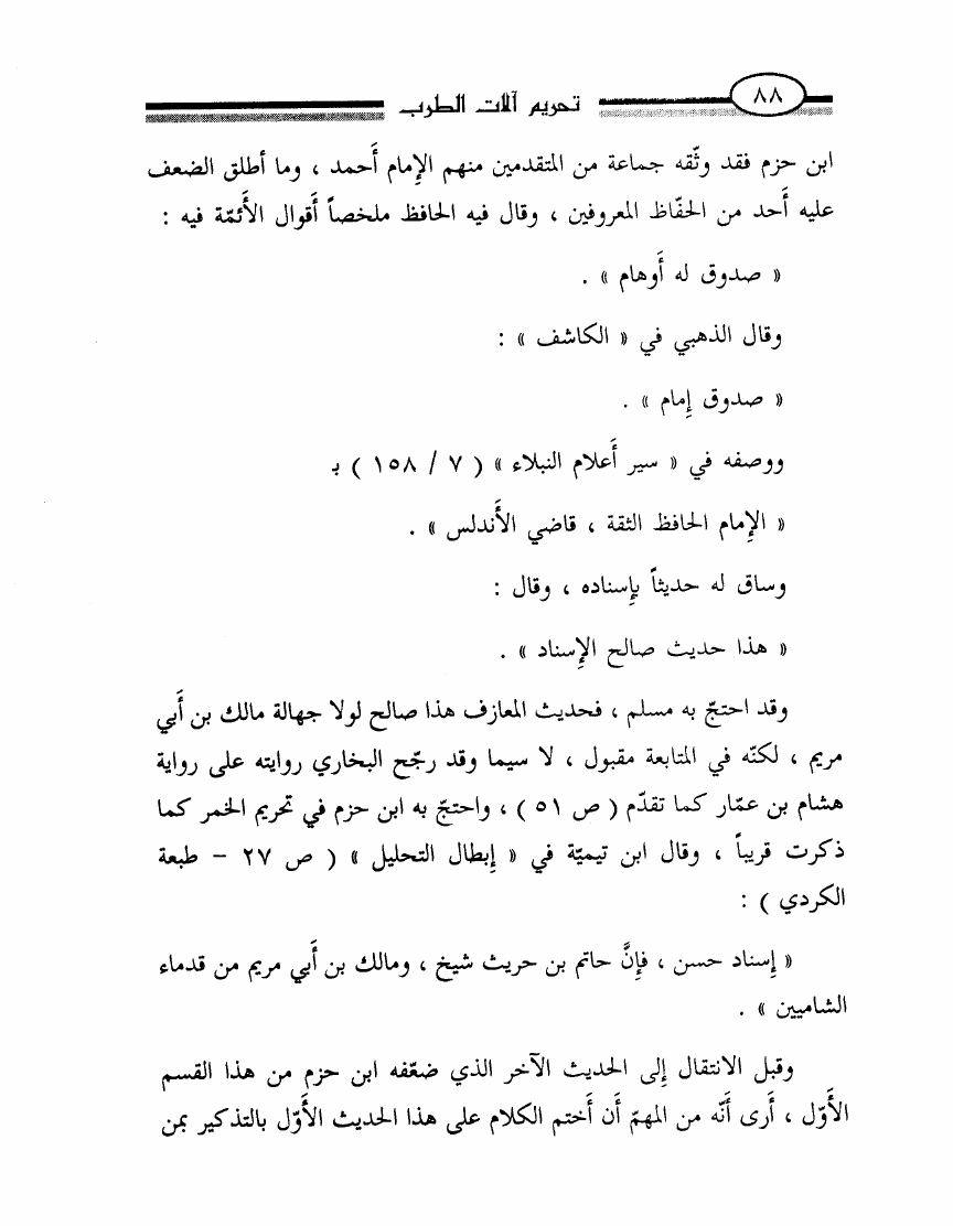 نام کتاب : تحريم آلات الطرب أو الرد بالوحيين وأقوال أئمتنا على ابن حزم ومقلديه المبيحين للمعازف والغنا وعلى الصوفيين الذين اتخذوه قربة ودينا نویسنده : محمد ناصر الدين الألباني جلد : 1 صفحه : 88