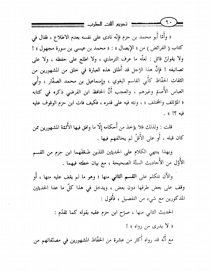 نام کتاب : تحريم آلات الطرب أو الرد بالوحيين وأقوال أئمتنا على ابن حزم ومقلديه المبيحين للمعازف والغنا وعلى الصوفيين الذين اتخذوه قربة ودينا نویسنده : محمد ناصر الدين الألباني جلد : 1 صفحه : 90