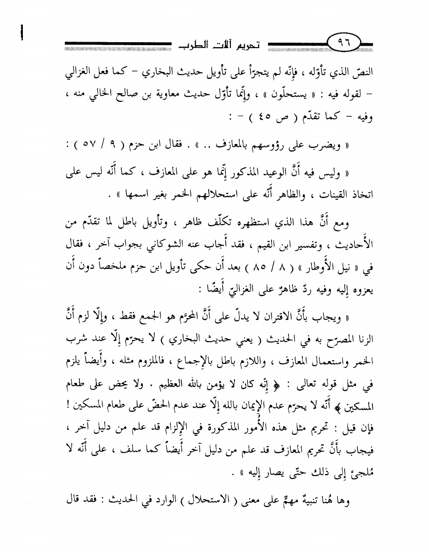 نام کتاب : تحريم آلات الطرب أو الرد بالوحيين وأقوال أئمتنا على ابن حزم ومقلديه المبيحين للمعازف والغنا وعلى الصوفيين الذين اتخذوه قربة ودينا نویسنده : محمد ناصر الدين الألباني جلد : 1 صفحه : 96