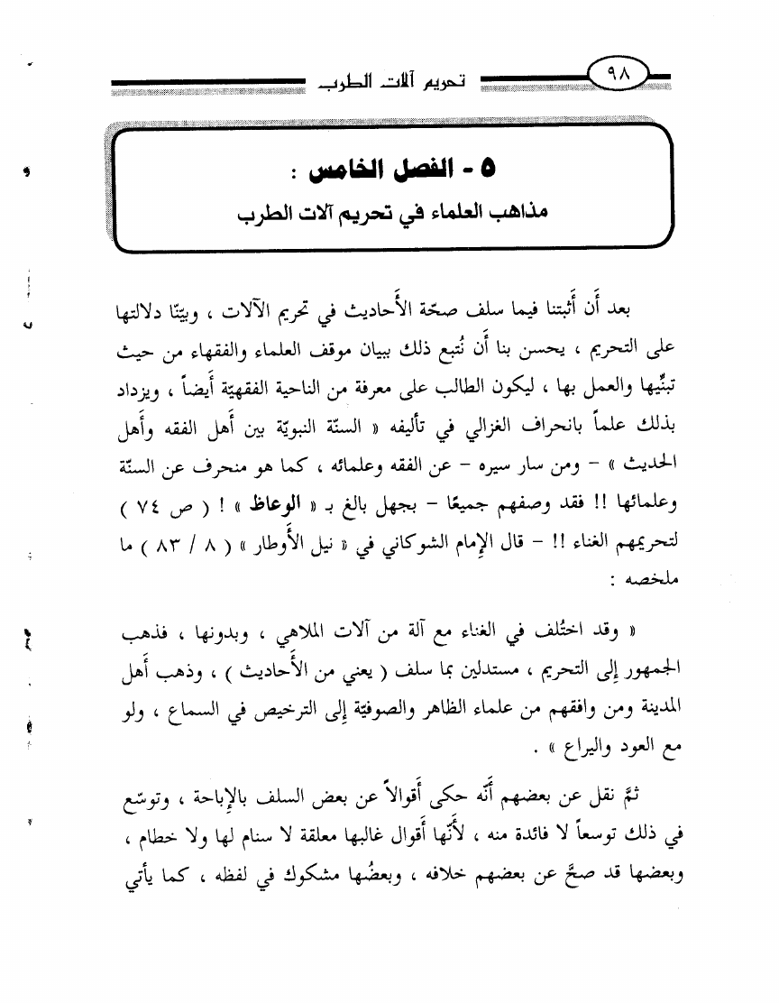نام کتاب : تحريم آلات الطرب أو الرد بالوحيين وأقوال أئمتنا على ابن حزم ومقلديه المبيحين للمعازف والغنا وعلى الصوفيين الذين اتخذوه قربة ودينا نویسنده : محمد ناصر الدين الألباني جلد : 1 صفحه : 98