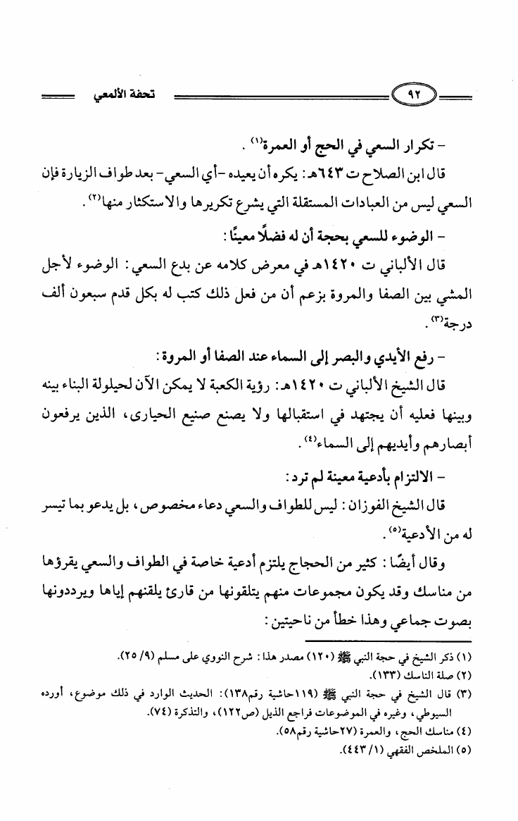 تحفة الألمعي بمعرفة حدود المسعى وأحكام السعي، ومعه رسالة في توسعة المسعى