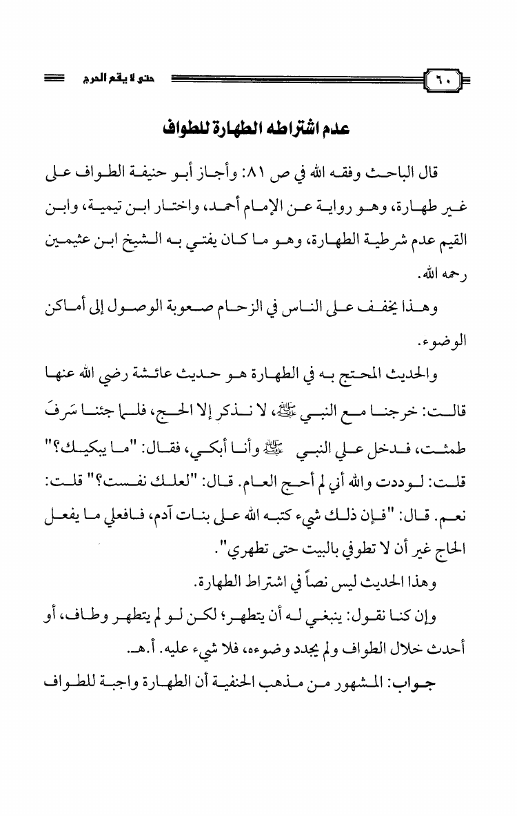 حتى لا يقع الحرج دراسة أدلة من لا يرى في ترك بعض المناسك حرجاً