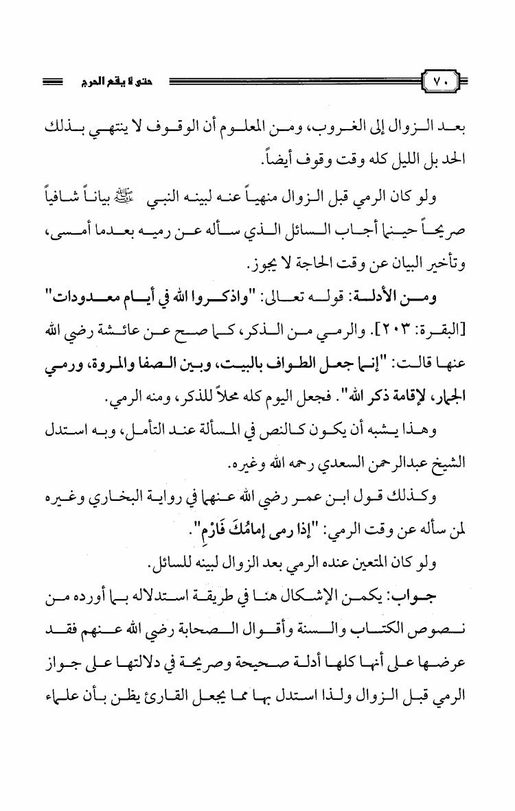 حتى لا يقع الحرج دراسة أدلة من لا يرى في ترك بعض المناسك حرجاً