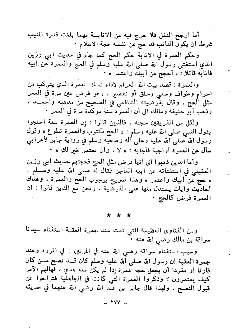 نام کتاب : حجة النبي صلى الله عليه وسلم وأحكام الحج والعمرة والحج في الإسلام والديانات الأخرى (ط. الأوقاف السعودية) نویسنده : أحمد عبد الغفور عطار جلد : 1 صفحه : 277