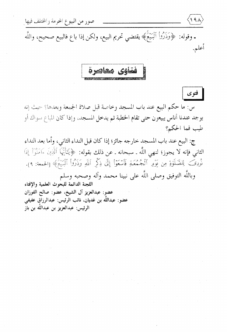 نام کتاب : صور من البيوع المحرمة والمختلف فيها ويليه بيع ما يعصى الله فيه ويليه فتاوى معاصرة لمسائل نازلة نویسنده : محمد بن علي حلاوة جلد : 1 صفحه : 198
