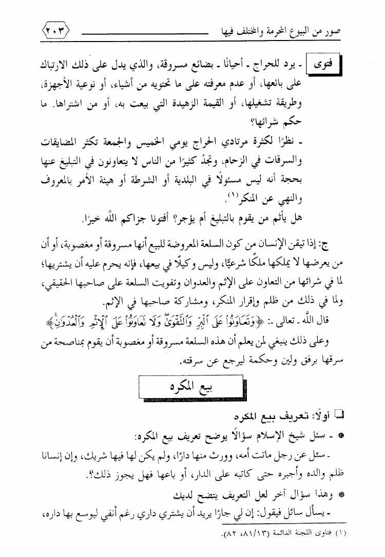 نام کتاب : صور من البيوع المحرمة والمختلف فيها ويليه بيع ما يعصى الله فيه ويليه فتاوى معاصرة لمسائل نازلة نویسنده : محمد بن علي حلاوة جلد : 1 صفحه : 203