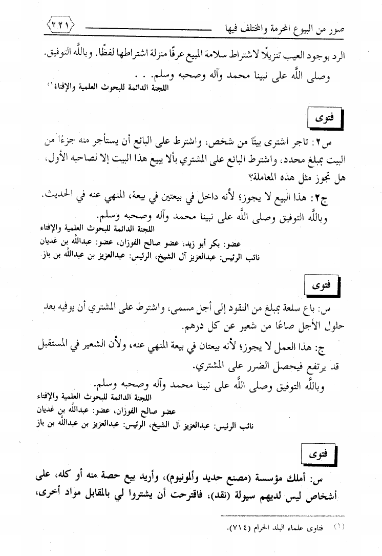 نام کتاب : صور من البيوع المحرمة والمختلف فيها ويليه بيع ما يعصى الله فيه ويليه فتاوى معاصرة لمسائل نازلة نویسنده : محمد بن علي حلاوة جلد : 1 صفحه : 221