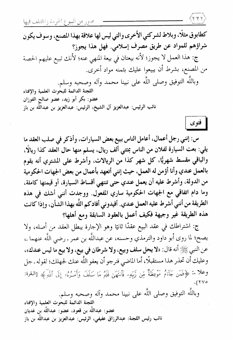 نام کتاب : صور من البيوع المحرمة والمختلف فيها ويليه بيع ما يعصى الله فيه ويليه فتاوى معاصرة لمسائل نازلة نویسنده : محمد بن علي حلاوة جلد : 1 صفحه : 222