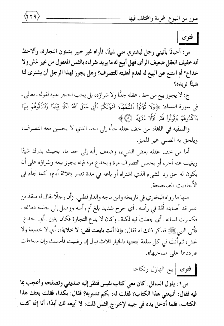 نام کتاب : صور من البيوع المحرمة والمختلف فيها ويليه بيع ما يعصى الله فيه ويليه فتاوى معاصرة لمسائل نازلة نویسنده : محمد بن علي حلاوة جلد : 1 صفحه : 229