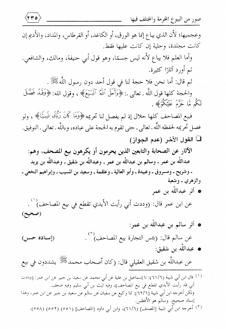 نام کتاب : صور من البيوع المحرمة والمختلف فيها ويليه بيع ما يعصى الله فيه ويليه فتاوى معاصرة لمسائل نازلة نویسنده : محمد بن علي حلاوة جلد : 1 صفحه : 235