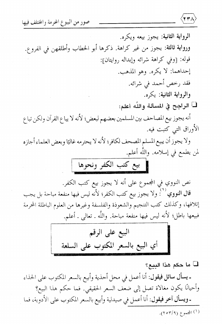 نام کتاب : صور من البيوع المحرمة والمختلف فيها ويليه بيع ما يعصى الله فيه ويليه فتاوى معاصرة لمسائل نازلة نویسنده : محمد بن علي حلاوة جلد : 1 صفحه : 238