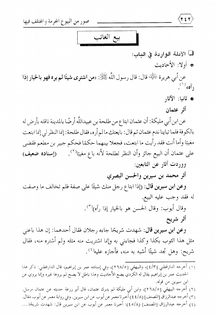 نام کتاب : صور من البيوع المحرمة والمختلف فيها ويليه بيع ما يعصى الله فيه ويليه فتاوى معاصرة لمسائل نازلة نویسنده : محمد بن علي حلاوة جلد : 1 صفحه : 242