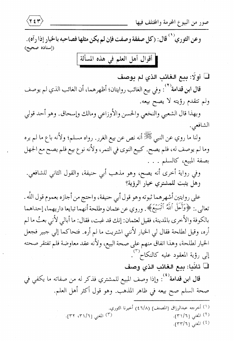 نام کتاب : صور من البيوع المحرمة والمختلف فيها ويليه بيع ما يعصى الله فيه ويليه فتاوى معاصرة لمسائل نازلة نویسنده : محمد بن علي حلاوة جلد : 1 صفحه : 243