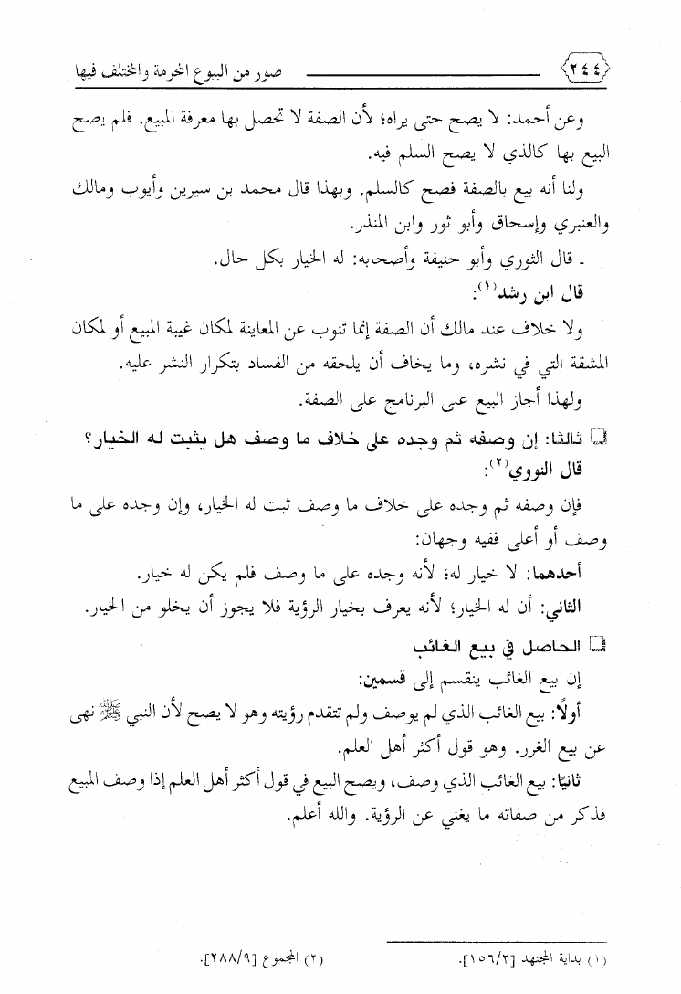نام کتاب : صور من البيوع المحرمة والمختلف فيها ويليه بيع ما يعصى الله فيه ويليه فتاوى معاصرة لمسائل نازلة نویسنده : محمد بن علي حلاوة جلد : 1 صفحه : 244
