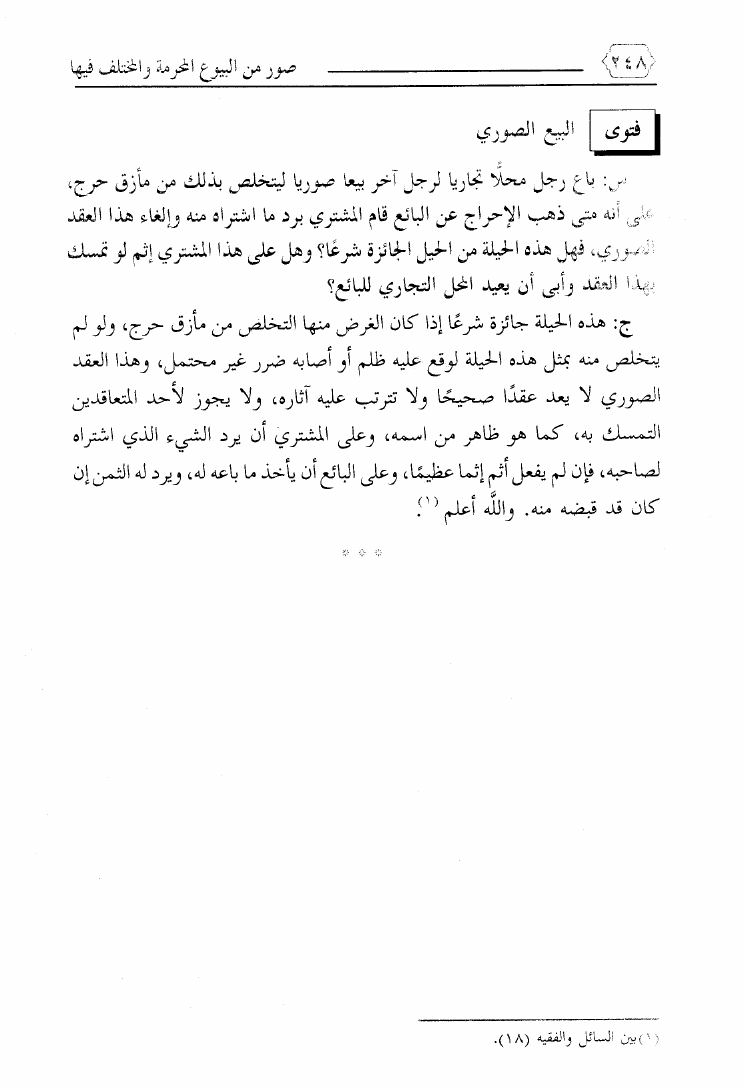 نام کتاب : صور من البيوع المحرمة والمختلف فيها ويليه بيع ما يعصى الله فيه ويليه فتاوى معاصرة لمسائل نازلة نویسنده : محمد بن علي حلاوة جلد : 1 صفحه : 248