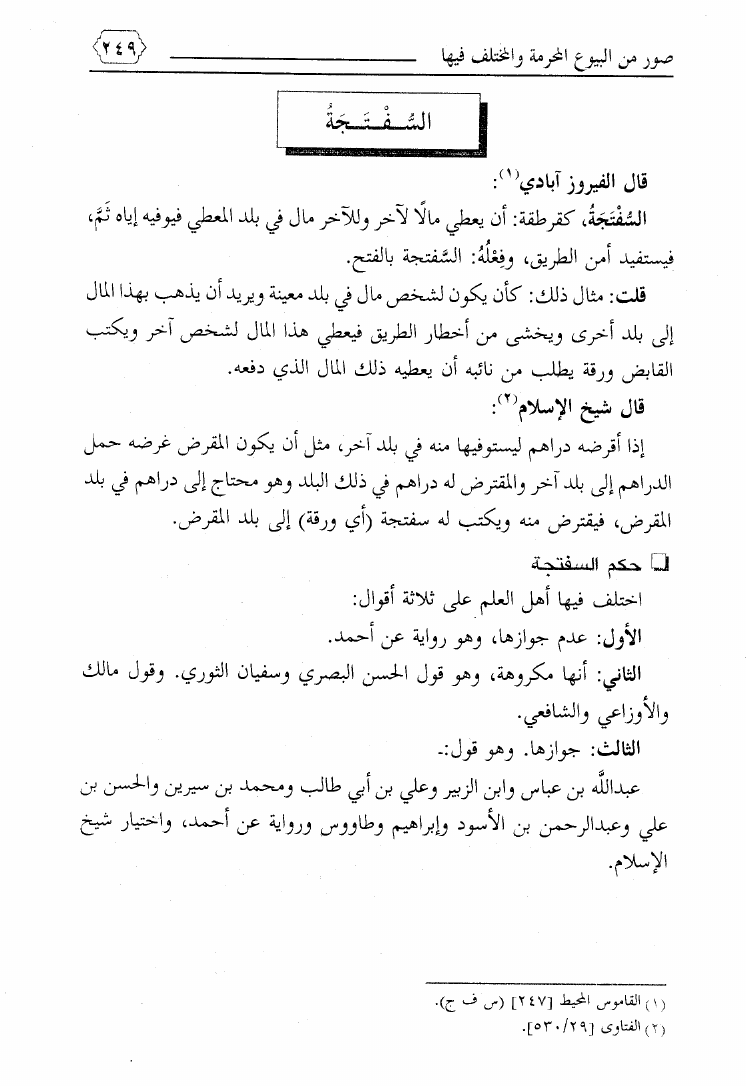 نام کتاب : صور من البيوع المحرمة والمختلف فيها ويليه بيع ما يعصى الله فيه ويليه فتاوى معاصرة لمسائل نازلة نویسنده : محمد بن علي حلاوة جلد : 1 صفحه : 249
