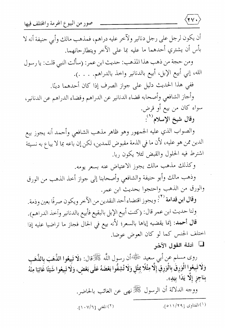 نام کتاب : صور من البيوع المحرمة والمختلف فيها ويليه بيع ما يعصى الله فيه ويليه فتاوى معاصرة لمسائل نازلة نویسنده : محمد بن علي حلاوة جلد : 1 صفحه : 270
