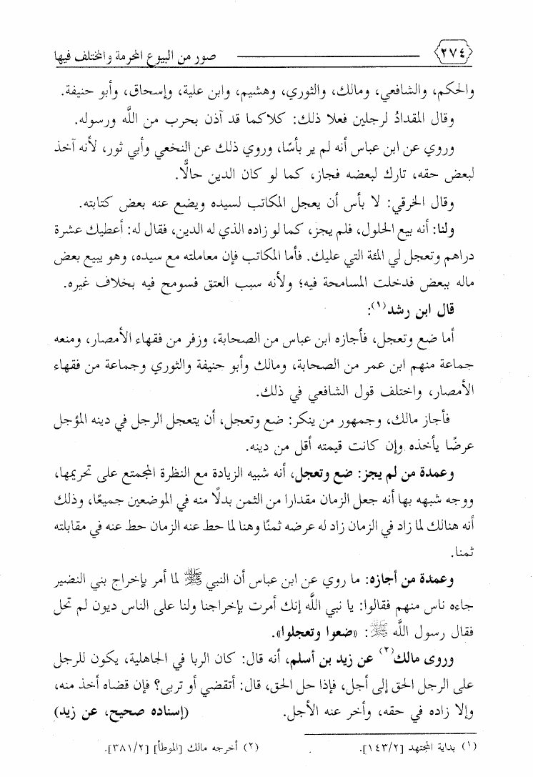 نام کتاب : صور من البيوع المحرمة والمختلف فيها ويليه بيع ما يعصى الله فيه ويليه فتاوى معاصرة لمسائل نازلة نویسنده : محمد بن علي حلاوة جلد : 1 صفحه : 274