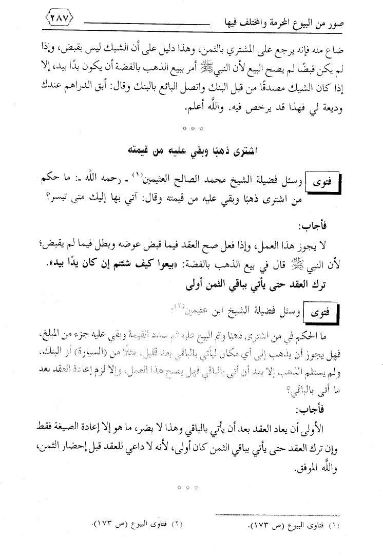 نام کتاب : صور من البيوع المحرمة والمختلف فيها ويليه بيع ما يعصى الله فيه ويليه فتاوى معاصرة لمسائل نازلة نویسنده : محمد بن علي حلاوة جلد : 1 صفحه : 287