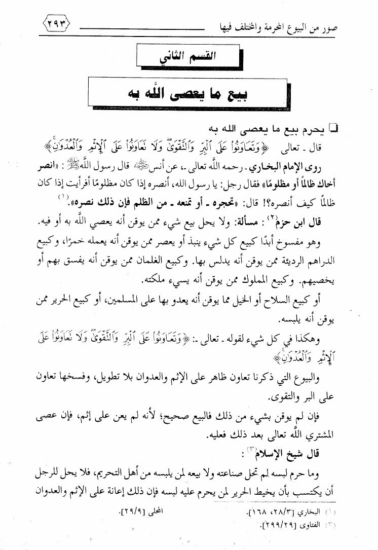 نام کتاب : صور من البيوع المحرمة والمختلف فيها ويليه بيع ما يعصى الله فيه ويليه فتاوى معاصرة لمسائل نازلة نویسنده : محمد بن علي حلاوة جلد : 1 صفحه : 293