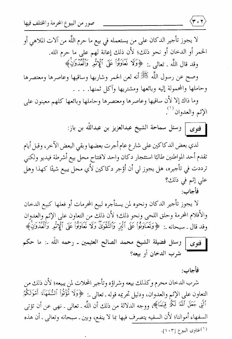نام کتاب : صور من البيوع المحرمة والمختلف فيها ويليه بيع ما يعصى الله فيه ويليه فتاوى معاصرة لمسائل نازلة نویسنده : محمد بن علي حلاوة جلد : 1 صفحه : 302