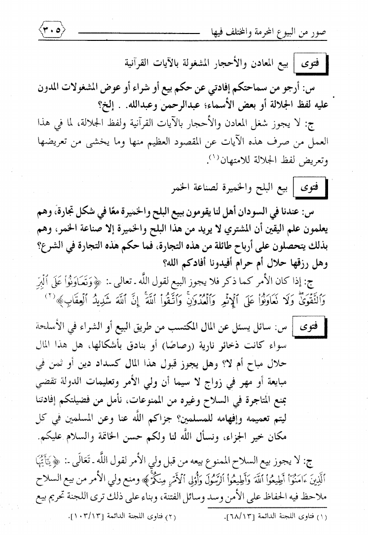 نام کتاب : صور من البيوع المحرمة والمختلف فيها ويليه بيع ما يعصى الله فيه ويليه فتاوى معاصرة لمسائل نازلة نویسنده : محمد بن علي حلاوة جلد : 1 صفحه : 305