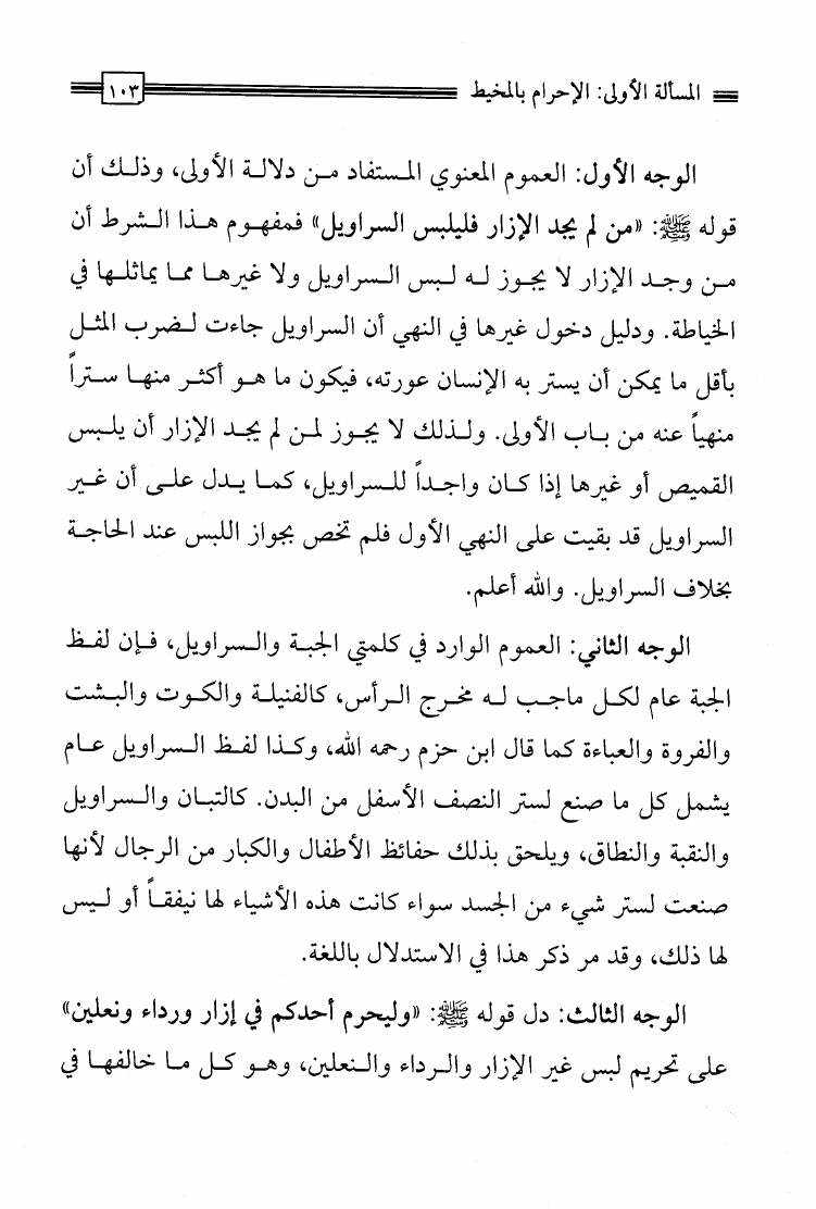نام کتاب : مشكل لباس الإحرام دراسة ست مسائل من أحكام لباس الإحرام مع تخريج الأحاديث والتعريف بأسماء الألبسة نویسنده : إبراهيم بن محمد الصبيحي جلد : 1 صفحه : 103