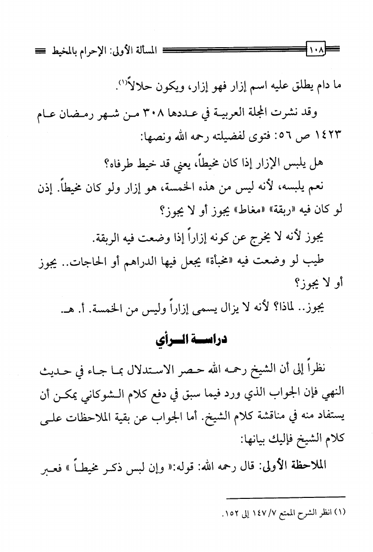 نام کتاب : مشكل لباس الإحرام دراسة ست مسائل من أحكام لباس الإحرام مع تخريج الأحاديث والتعريف بأسماء الألبسة نویسنده : إبراهيم بن محمد الصبيحي جلد : 1 صفحه : 108