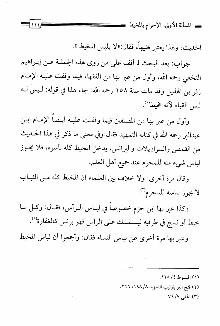 نام کتاب : مشكل لباس الإحرام دراسة ست مسائل من أحكام لباس الإحرام مع تخريج الأحاديث والتعريف بأسماء الألبسة نویسنده : إبراهيم بن محمد الصبيحي جلد : 1 صفحه : 111