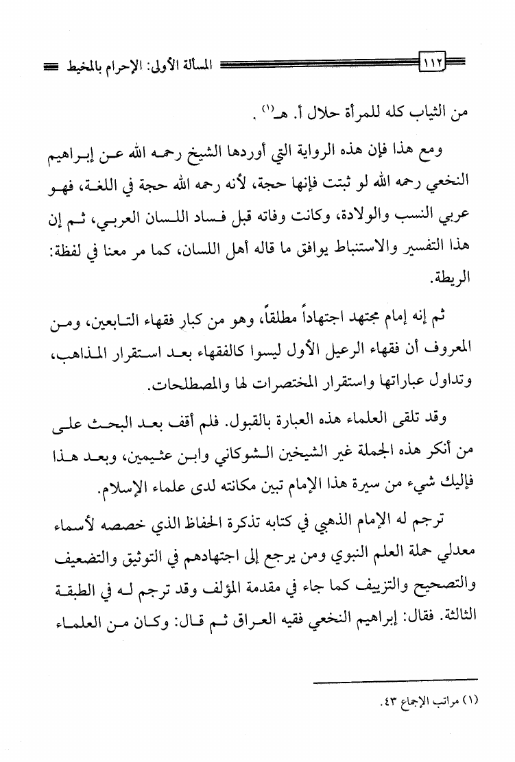نام کتاب : مشكل لباس الإحرام دراسة ست مسائل من أحكام لباس الإحرام مع تخريج الأحاديث والتعريف بأسماء الألبسة نویسنده : إبراهيم بن محمد الصبيحي جلد : 1 صفحه : 112