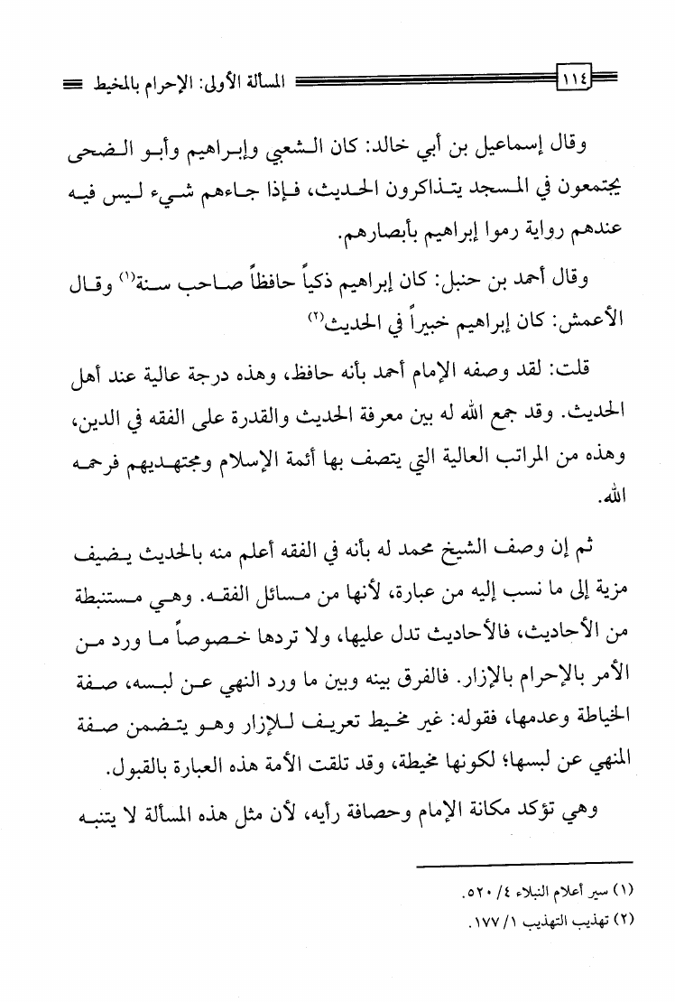 نام کتاب : مشكل لباس الإحرام دراسة ست مسائل من أحكام لباس الإحرام مع تخريج الأحاديث والتعريف بأسماء الألبسة نویسنده : إبراهيم بن محمد الصبيحي جلد : 1 صفحه : 114