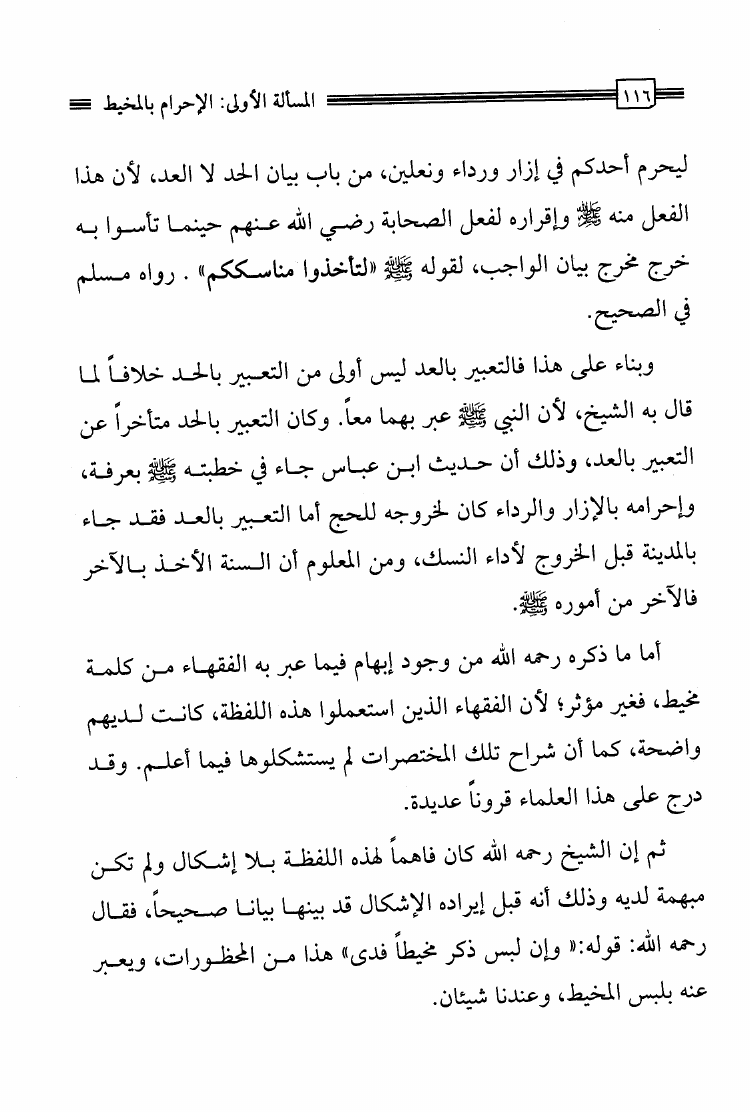 نام کتاب : مشكل لباس الإحرام دراسة ست مسائل من أحكام لباس الإحرام مع تخريج الأحاديث والتعريف بأسماء الألبسة نویسنده : إبراهيم بن محمد الصبيحي جلد : 1 صفحه : 116