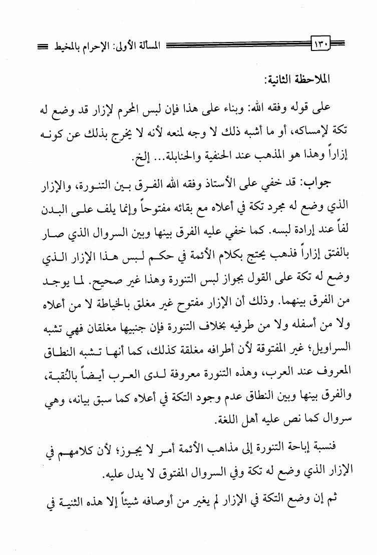 نام کتاب : مشكل لباس الإحرام دراسة ست مسائل من أحكام لباس الإحرام مع تخريج الأحاديث والتعريف بأسماء الألبسة نویسنده : إبراهيم بن محمد الصبيحي جلد : 1 صفحه : 130