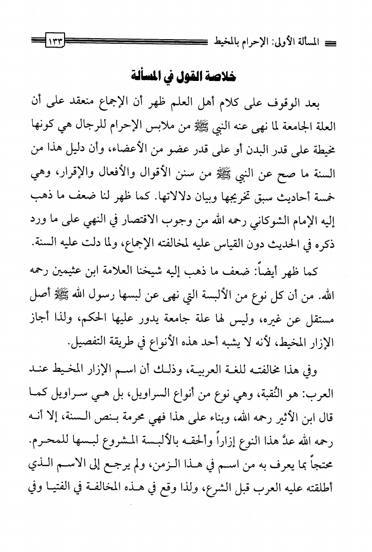 نام کتاب : مشكل لباس الإحرام دراسة ست مسائل من أحكام لباس الإحرام مع تخريج الأحاديث والتعريف بأسماء الألبسة نویسنده : إبراهيم بن محمد الصبيحي جلد : 1 صفحه : 133