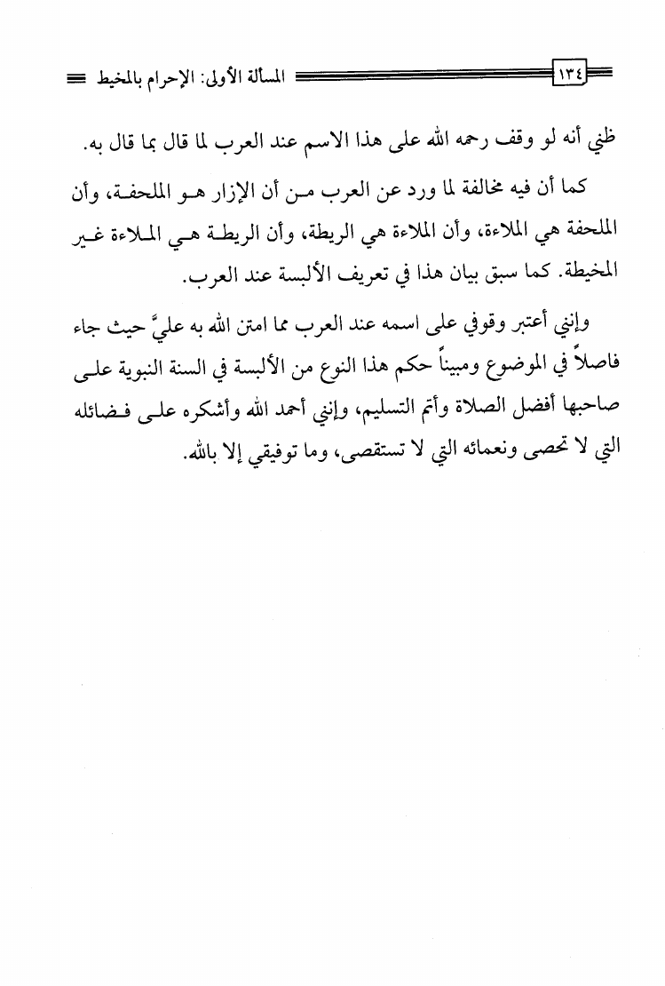 نام کتاب : مشكل لباس الإحرام دراسة ست مسائل من أحكام لباس الإحرام مع تخريج الأحاديث والتعريف بأسماء الألبسة نویسنده : إبراهيم بن محمد الصبيحي جلد : 1 صفحه : 134
