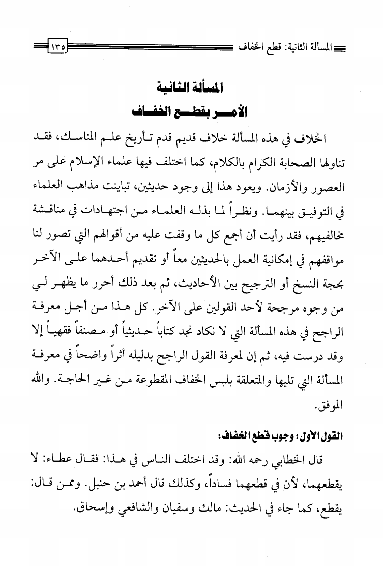 نام کتاب : مشكل لباس الإحرام دراسة ست مسائل من أحكام لباس الإحرام مع تخريج الأحاديث والتعريف بأسماء الألبسة نویسنده : إبراهيم بن محمد الصبيحي جلد : 1 صفحه : 135
