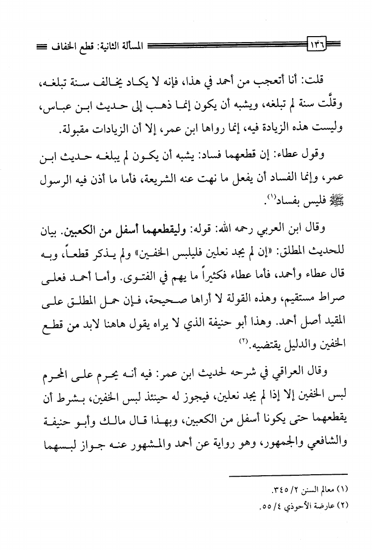 نام کتاب : مشكل لباس الإحرام دراسة ست مسائل من أحكام لباس الإحرام مع تخريج الأحاديث والتعريف بأسماء الألبسة نویسنده : إبراهيم بن محمد الصبيحي جلد : 1 صفحه : 136