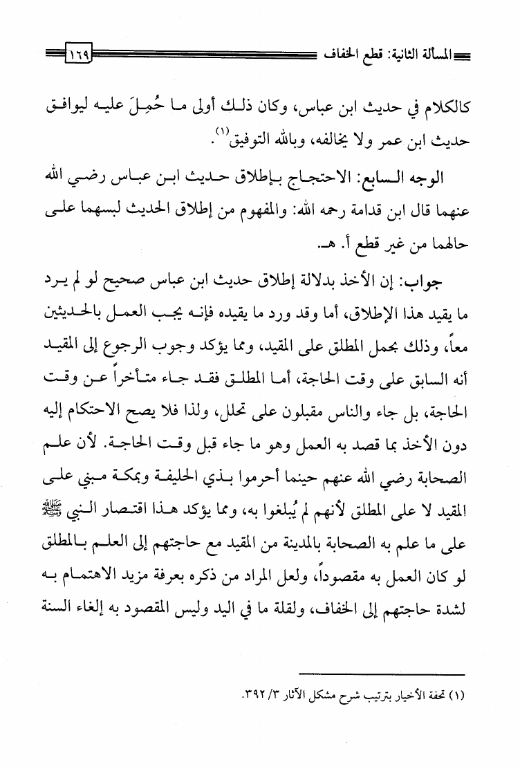 نام کتاب : مشكل لباس الإحرام دراسة ست مسائل من أحكام لباس الإحرام مع تخريج الأحاديث والتعريف بأسماء الألبسة نویسنده : إبراهيم بن محمد الصبيحي جلد : 1 صفحه : 169