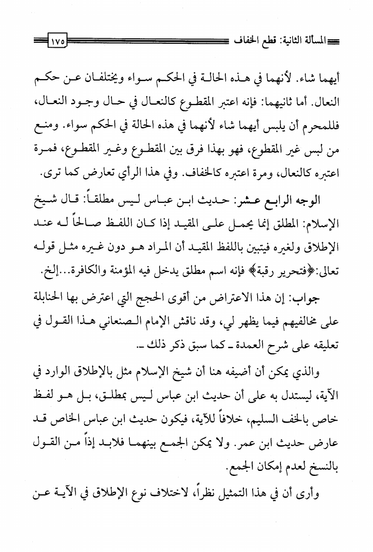 نام کتاب : مشكل لباس الإحرام دراسة ست مسائل من أحكام لباس الإحرام مع تخريج الأحاديث والتعريف بأسماء الألبسة نویسنده : إبراهيم بن محمد الصبيحي جلد : 1 صفحه : 175