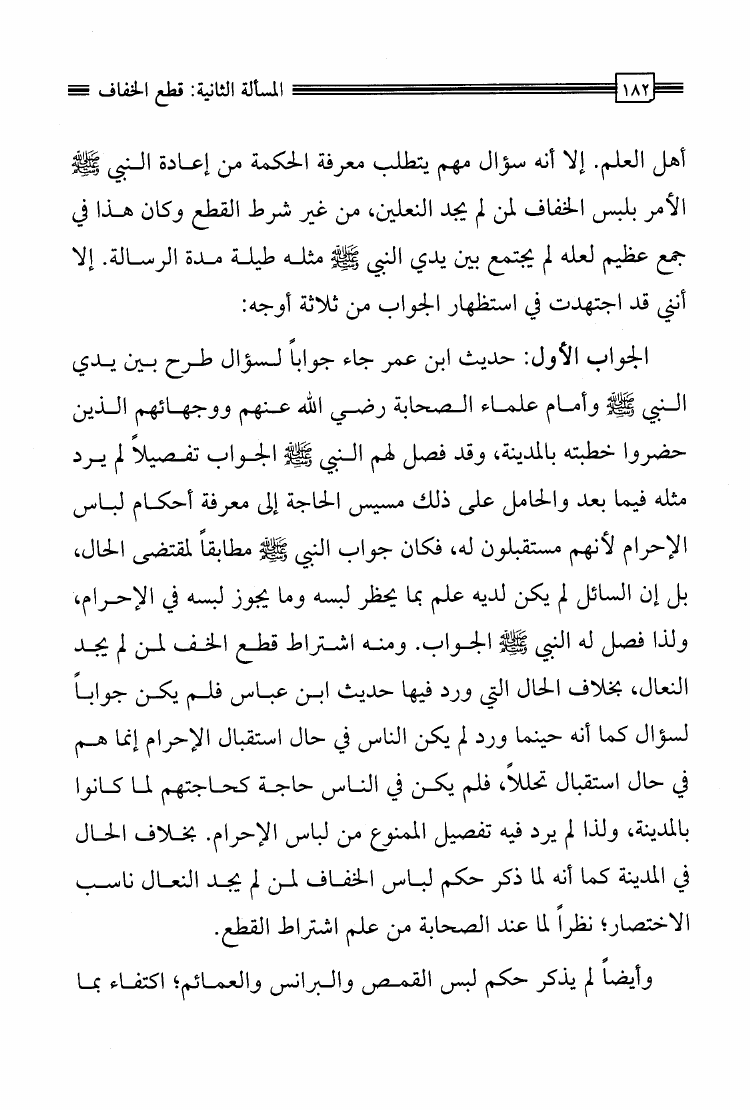 نام کتاب : مشكل لباس الإحرام دراسة ست مسائل من أحكام لباس الإحرام مع تخريج الأحاديث والتعريف بأسماء الألبسة نویسنده : إبراهيم بن محمد الصبيحي جلد : 1 صفحه : 182